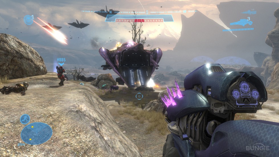 Bungie har dock t�nkt till mer �n s�. Det �r n�mligen inte bara handlingen som binder samman Reach med Halo. Reach �r p� ett flertal s�tt en tillbakag�ng till allt som gjorde det f�rsta spelet till ett od�dligt m�sterverk. Till att b�rja med �r banorna genialiska i sin utformning. De f�r ofrivilligt tankarna till Halos �ppna, breda slagf�lt � n�got som jag har saknat i de �vriga spelen i serien. Som f�ljd k�nns Reach betydligt mindre linj�rt och slagf�lten mer dynamiska. Covenanterna g�r sitt b�sta f�r att t�cka s� stor del av slagf�ltet som m�jligt och de f�ljer inga tydliga, f�rutbest�mda m�nster. Covenanterna k�nns mer levande och smartare �n n�gonsin.